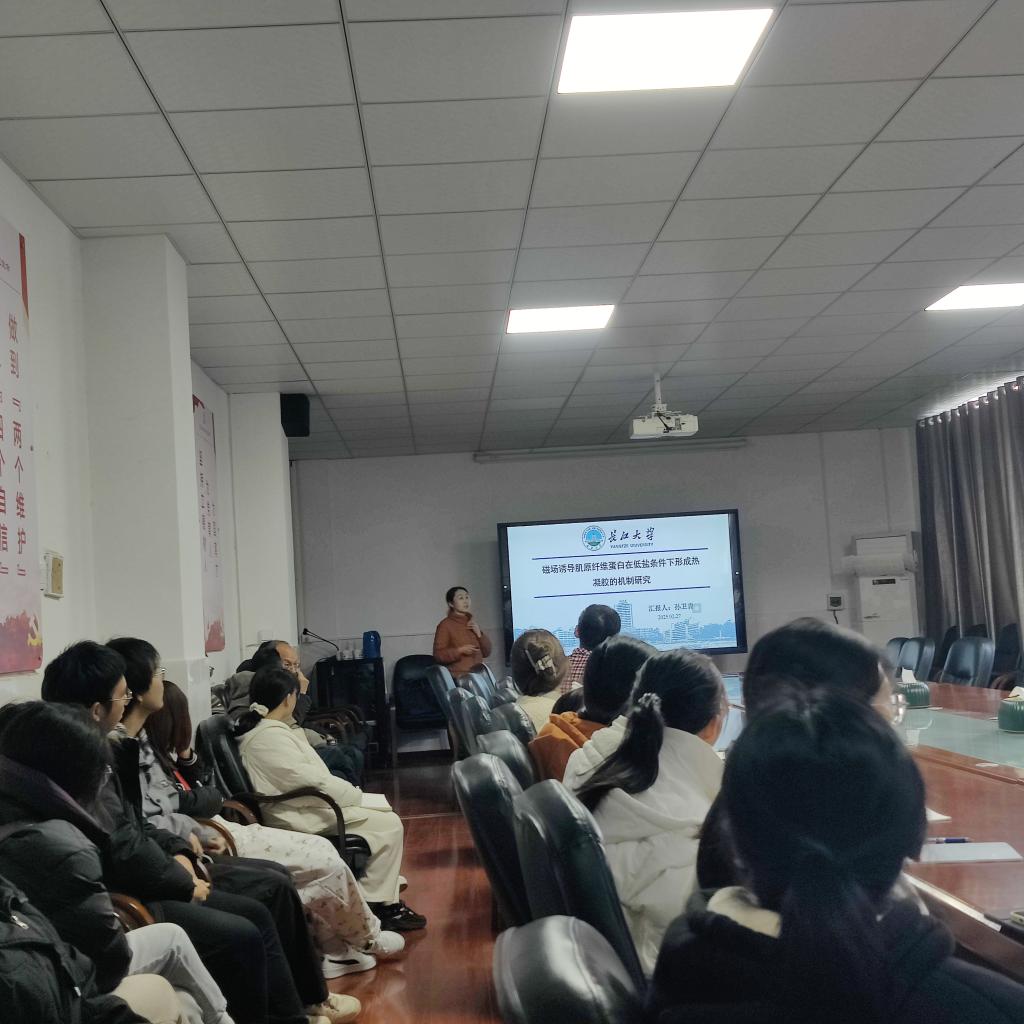 (通讯员杨笑彦)2月27日下午,生命科学学院在西校区1-217举办2025年第一期求实导师学术沙龙。此次活动由丁保淼教授主持。博士生导师高梦祥教授的报告题目为视蛋白在紫色红曲菌生长和聚酮类次生代谢产物合成中的作用;博士生导师孙卫青教授的报告题目为磁场诱导肌原纤维蛋白在低盐条件下形成热凝胶的机制研究。硕士生导师杨华林教授的报告题目为基于抗体及核酸检测食品及水环境中有害物质的方法开发。共100余名师生参加。