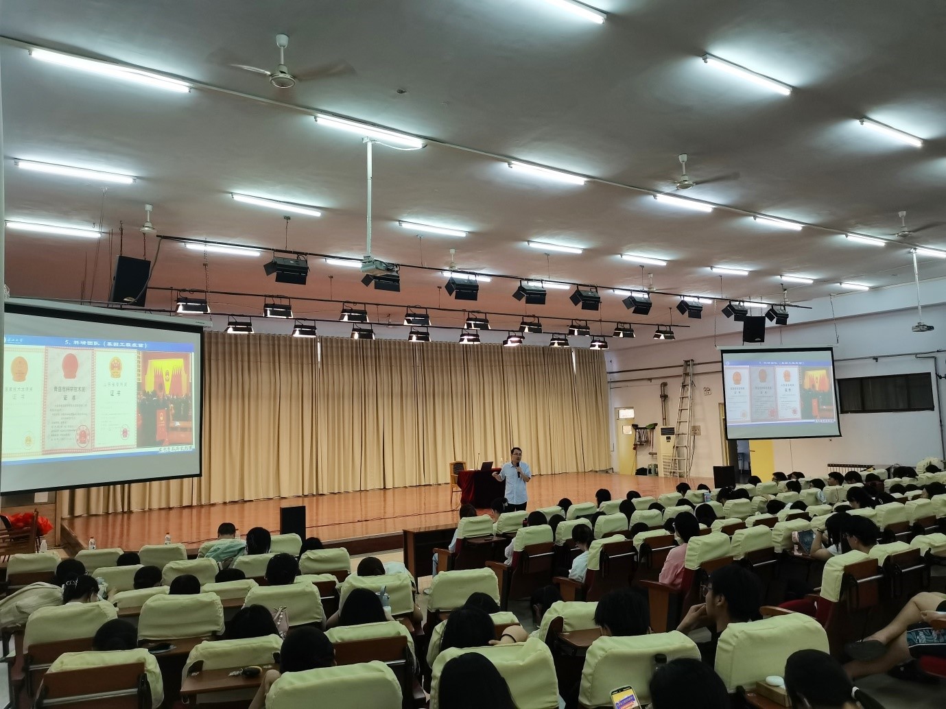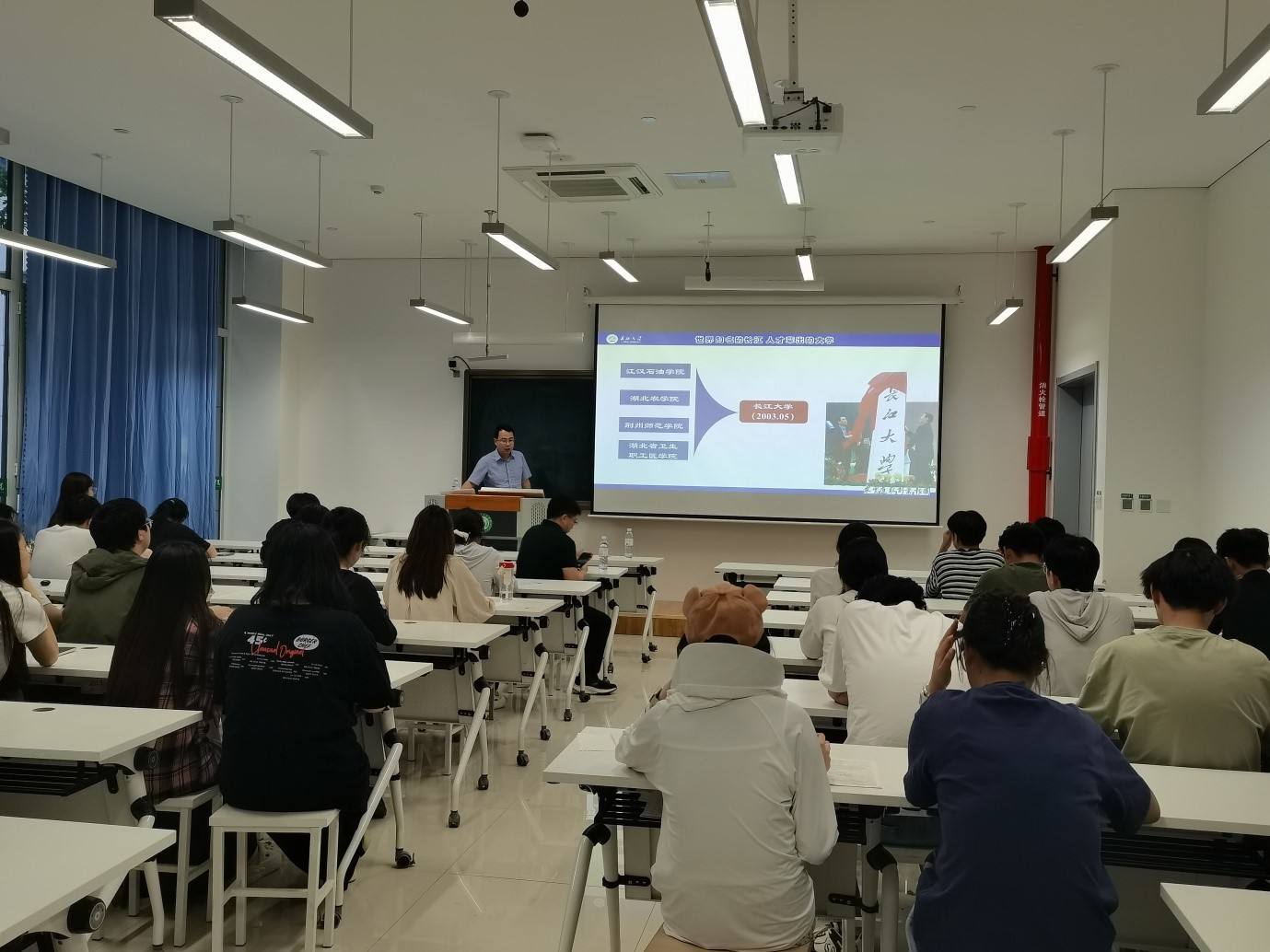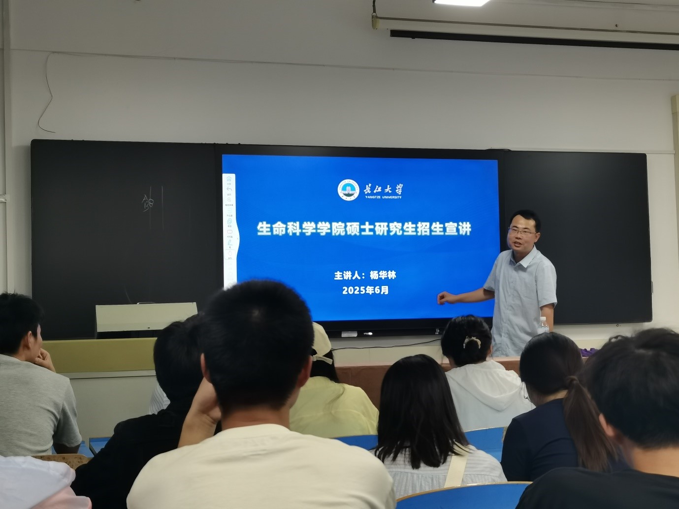宣讲会现场气氛热烈,两位教授通过系统化的宣讲内容设计,从长江大学办学历史切入,逐步深入介绍学院发展概况、学科建设成果及人才培养特色等。宣讲重点围绕学院学科优势、高水平师资队伍、前沿科研成果、多元化奖助体系以及最新招生政策等五个维度展开,辅以详实的数据支撑和生动的案例解析,使在场学子对我院研究生培养特色形成了全面而深刻的认识,现场互动频繁,掌声不断。