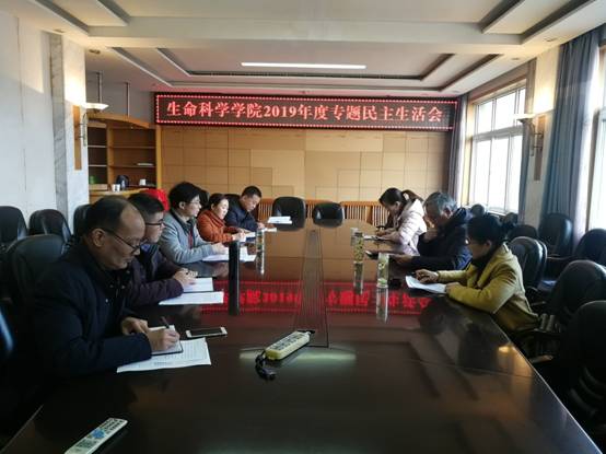 (通讯员 孙恺)根据学校党委工作部署,2019年12月10日,生命科学学院领导班子在学院大会议室召开2019年度专题民主生活会。学校指导组组长、副校长张大平同志,指导组副组长、组织部副部长张伟同志,组织部科长沈谦同志应邀参会,学院处级党员领导干部、非党员处级领导干部(列席)参会。会议由学院党委书记蔡哲斌同志主持。