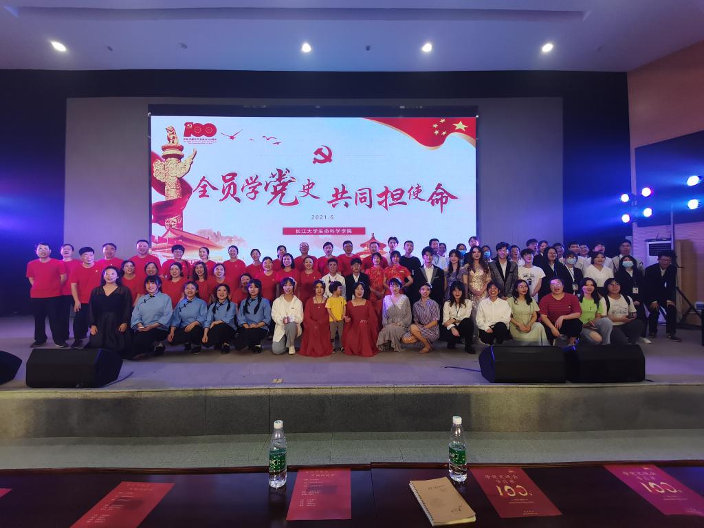 为庆祝中国共产党成立100周年,进一步激发广大青年学生的爱党、爱国热情,生命科学学院于6月5日晚在农科楼报告厅举行“全员学党史、共同担使命”文艺晚会。学院党委书记蔡哲斌、院长高梦祥、组织员冯朝章、党委副书记汪萍、副院长孙卫青、杜何为、全体教师、辅导员及各级学生组织代表等400余人共同观看晚会。
