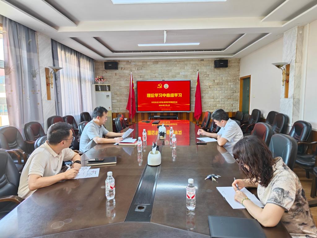 (通讯员 朱翠玲)7月4日上午,我院党委理论学习中心组在西校区行政楼323会议室开展七月份政治理论集中学习,中心组成员参加,会议由党委书记谢作喜主持。