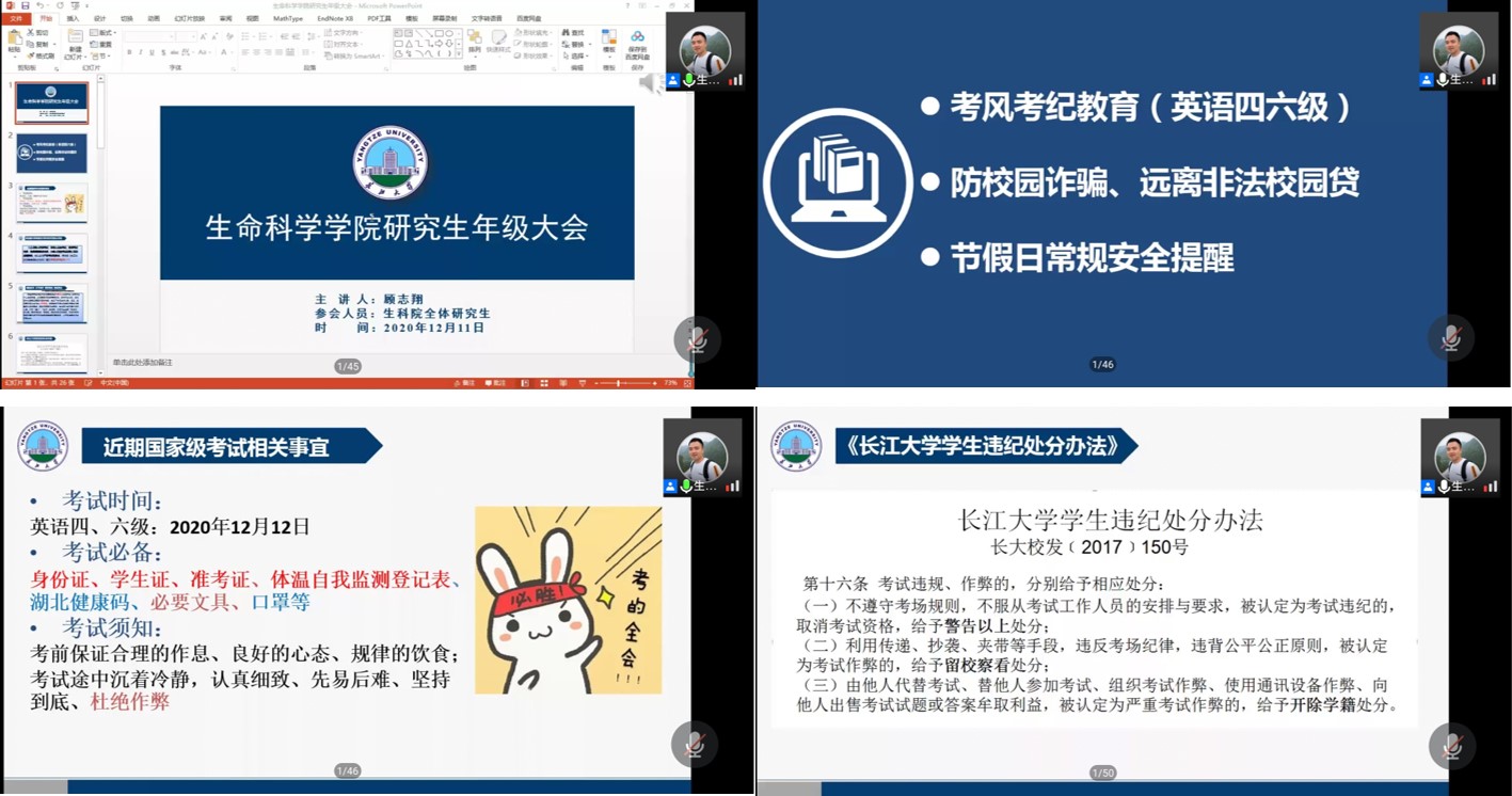 (通讯员 顾志翔 吴洁)12月11日18:00生命科学学院在腾讯会议上召开了研究生年级大会。生命科学学院研究生辅导员顾志翔老师及学院全体研究生参加了此次会议。