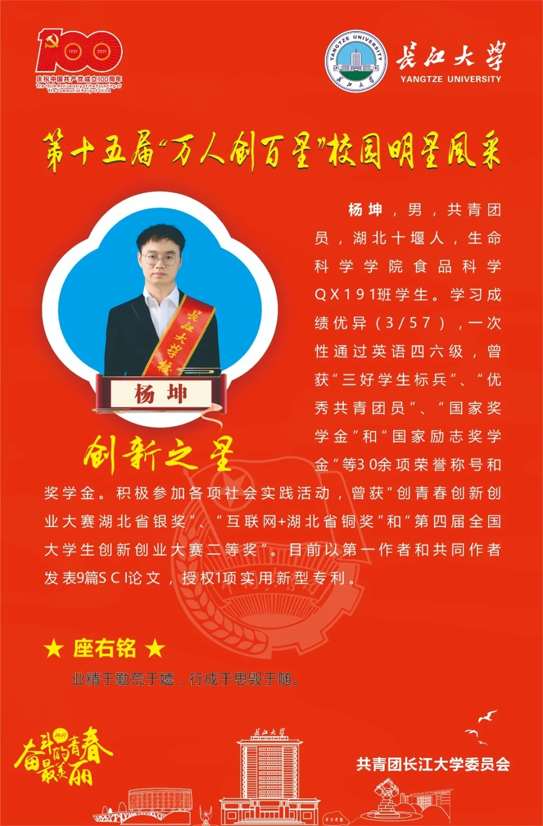 【第十五届“万人创百星”校园明星风采】——创新之星、十佳之星杨坤