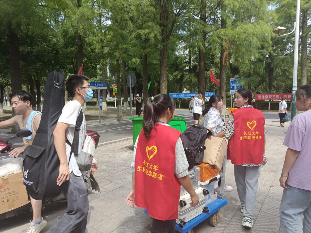 (通讯员 范昆琨 贾仕芳)金秋九月,秋高气爽。9月3日,我院迎来了2021级新生开学,为做好迎新工作,学院辅导员、院团委学生会、团委青年志愿团、安委会以及各班级志愿者共同组织了迎新队伍,为新生提供服务。