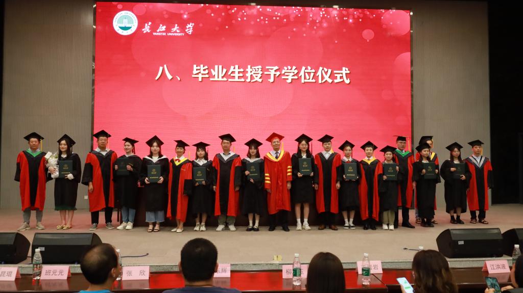 最后,身穿学位服的硕士毕业生、本科毕业生依次走上主席台,由老师们为每一位毕业生拨穗、授予学位。