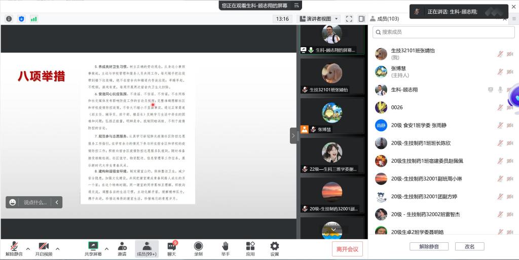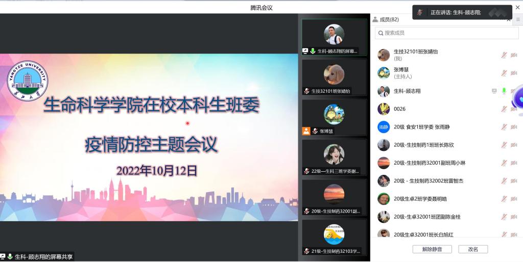 (通讯员:郭思佟 顾志翔)根据上级相关通知要求,为有效应对严峻的疫情防控形势,切实做好疫情防控工作,生命科学学院于10月12日晚9:00召开疫情防控工作会议,学院党委副书记汪萍老师、辅导员顾志翔老师以及全体本科生学生干部参加本次会议。