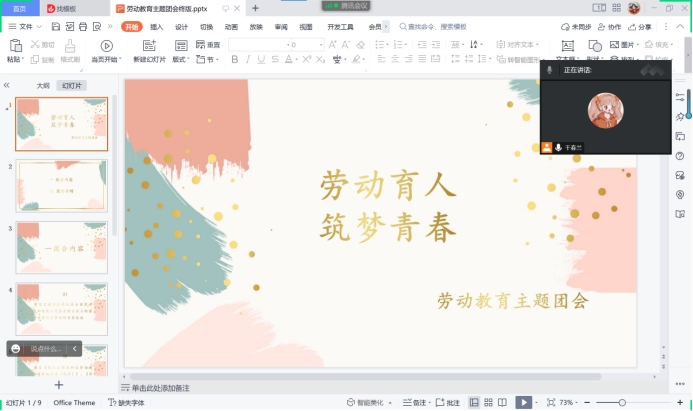 中午十二时三十分,主持人干春兰讲解了PPT,她带领同学们学习了习近平总书记在全国劳动模范和先进工作者表彰大会上的重要讲话等关于劳动的重要讲述,之后她又带领同学们学习了《长江大学本科生劳动教育课程实施方案》和《长江大学公益劳动教育实施方案》。最后,主持人干春兰播放了《大国工匠》和《永不过时的劳模精神》等纪录片。同学们十分投入,氛围非常好。