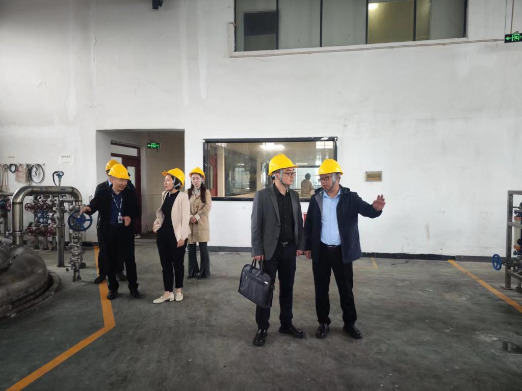 随后,一行人来到湖南新合新生物医药有限公司,参观了其车间流水线。在车间内,大家亲眼目睹了现代化生产线的运作过程,对新合新生物医药在落实环保政策、提升生产效率、优化生产流程方面所做的努力表示肯定。同时,双方就如何加强实践教学、提升学生实践能力等议题进行了深入探讨。