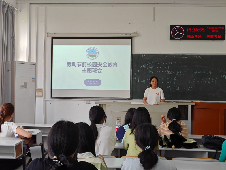 班会上,主持人强调了安全出行的重要性,提醒同学们选择正规渠道购票乘车,避免乘坐无牌无证交通工具,并密切关注天气变化。同时,主持人还就宿舍安全进行了重点讲解,要求同学们严格遵守消防管理规定,严禁使用违禁电器,确保宿舍安全无虞。