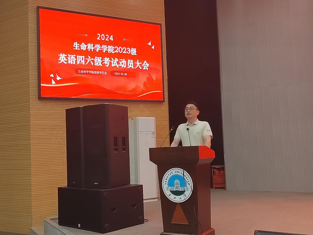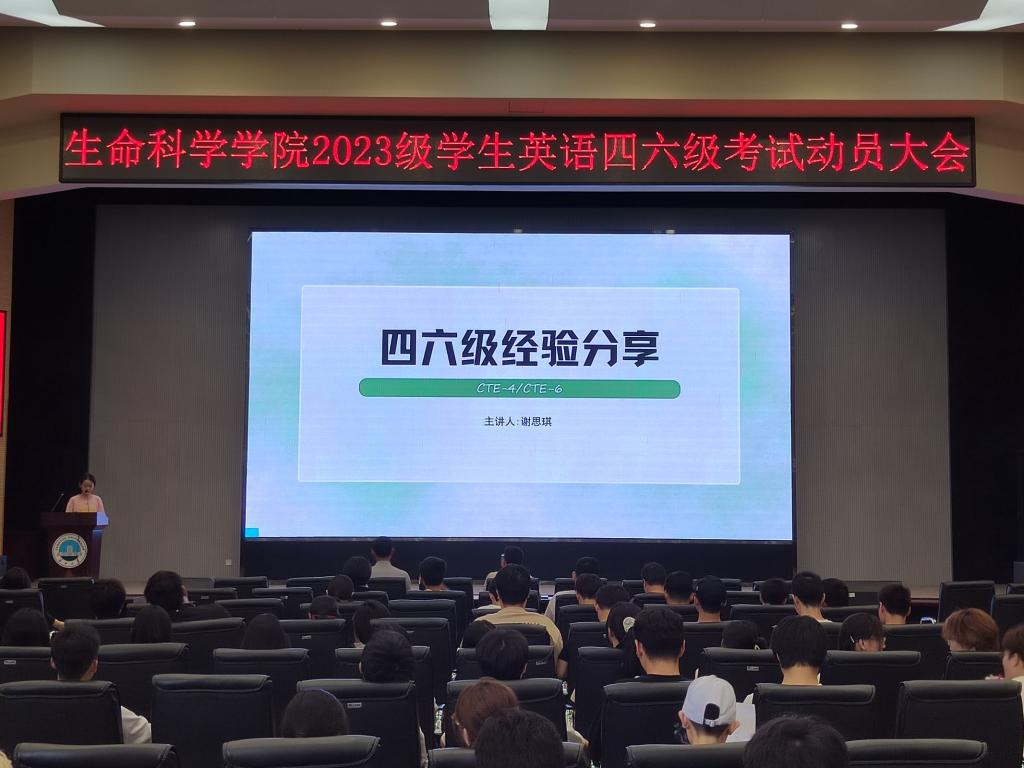 (通讯员 李敏 周美君)为激发学生备考热情,提升备考效率,提高英语四六级考试通过率,5月9日下午2时,生命科学学院在农科大楼1058报告厅召开了2023级学生英语四六级考试动员大会。学院党委副书记万波、辅导员李敏和全体大一学生参加了会议。
