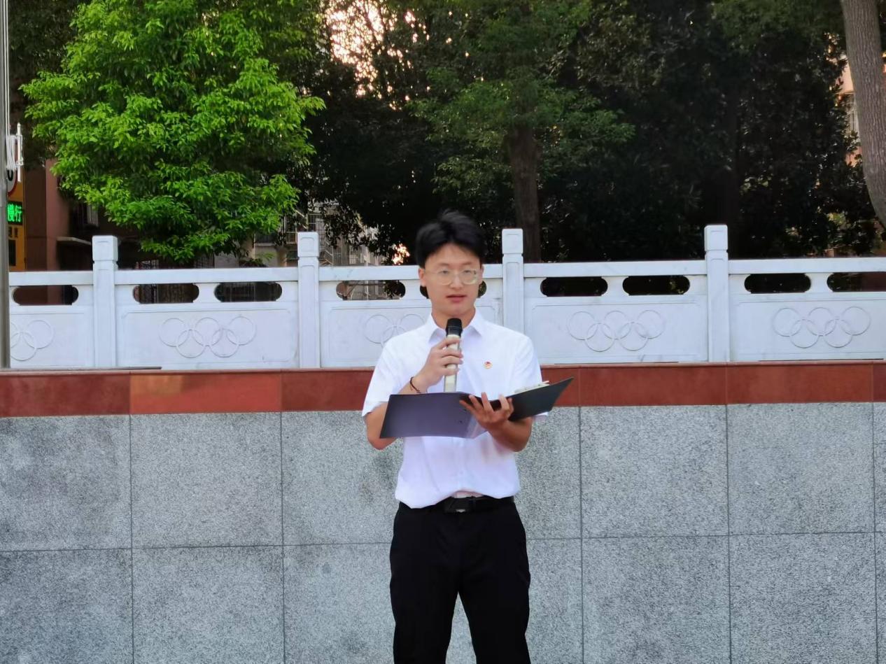 礼毕,生技32202班的学生郭超作为学生代表作国旗下宣讲,他结合自身经验,倡议全体学生无论遇到多少困难和挑战,都要以积极的态度去面对,同时鼓励大家积极参与社会实践和志愿服务活动,为社会贡献自己的绵薄力量。