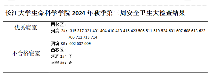 长江大学生命科学学院2024年秋季第三周安全卫生大检查结果