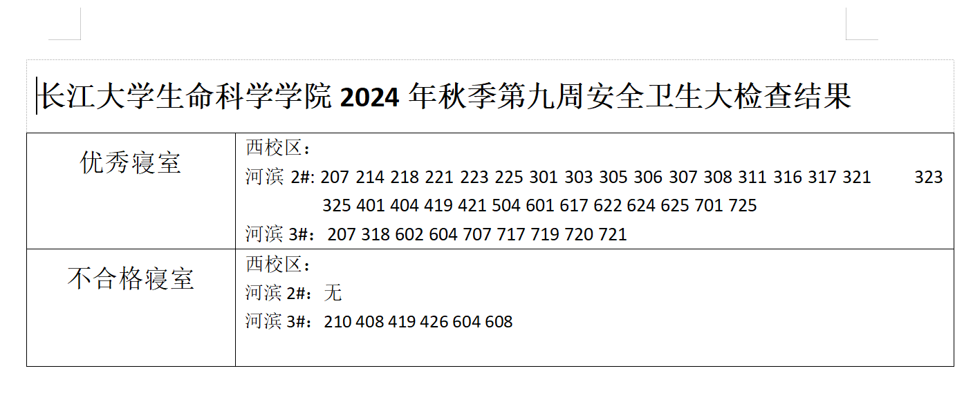 长江大学生命科学学院2024年秋季第九周安全卫生大检查结果