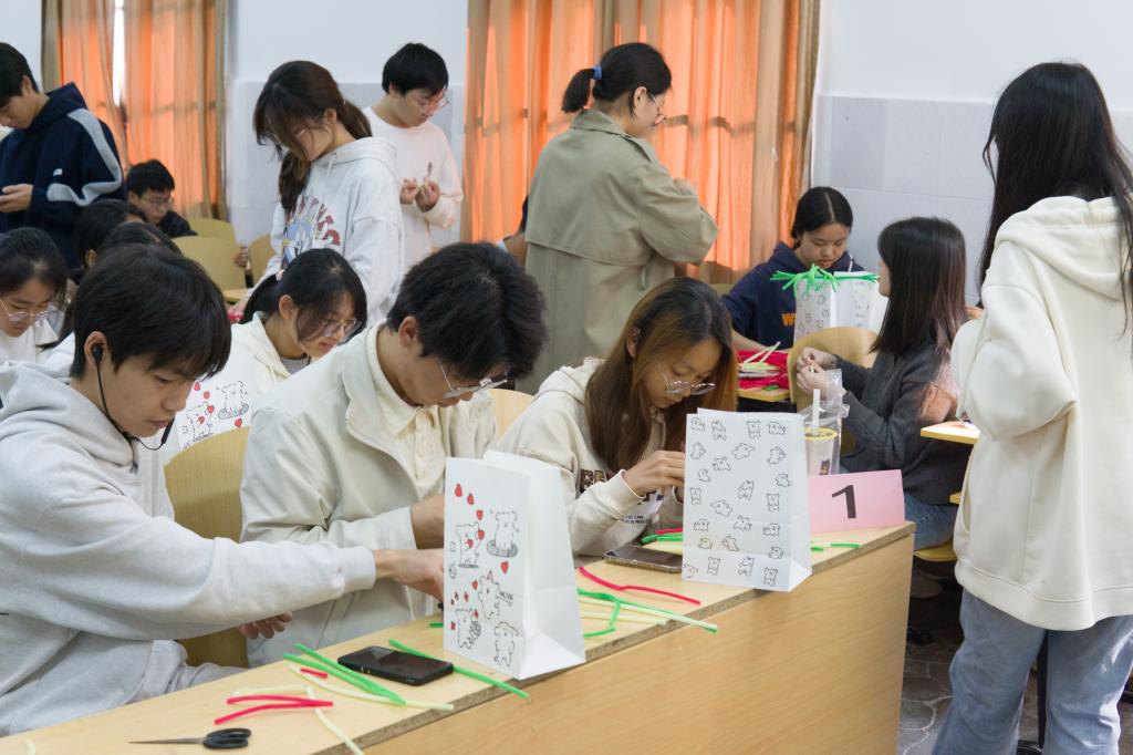 在活动现场,桌上摆满了制作小红花的材料包,供志愿者们自行选取。随后志愿者们在青年志愿服务支队学干们耐心细致的讲解下开始了小红花的制作。活动过程中充满了欢声笑语,每一个人的脸上都洋溢着笑容。“情谊深深藏花中,愿你岁岁皆欢颜。”经过一个多小时的努力,一朵朵精美的小红花在同学们的手上绽放,它们形态各异,色彩斑斓,充满了专属于同学们的青春气息。