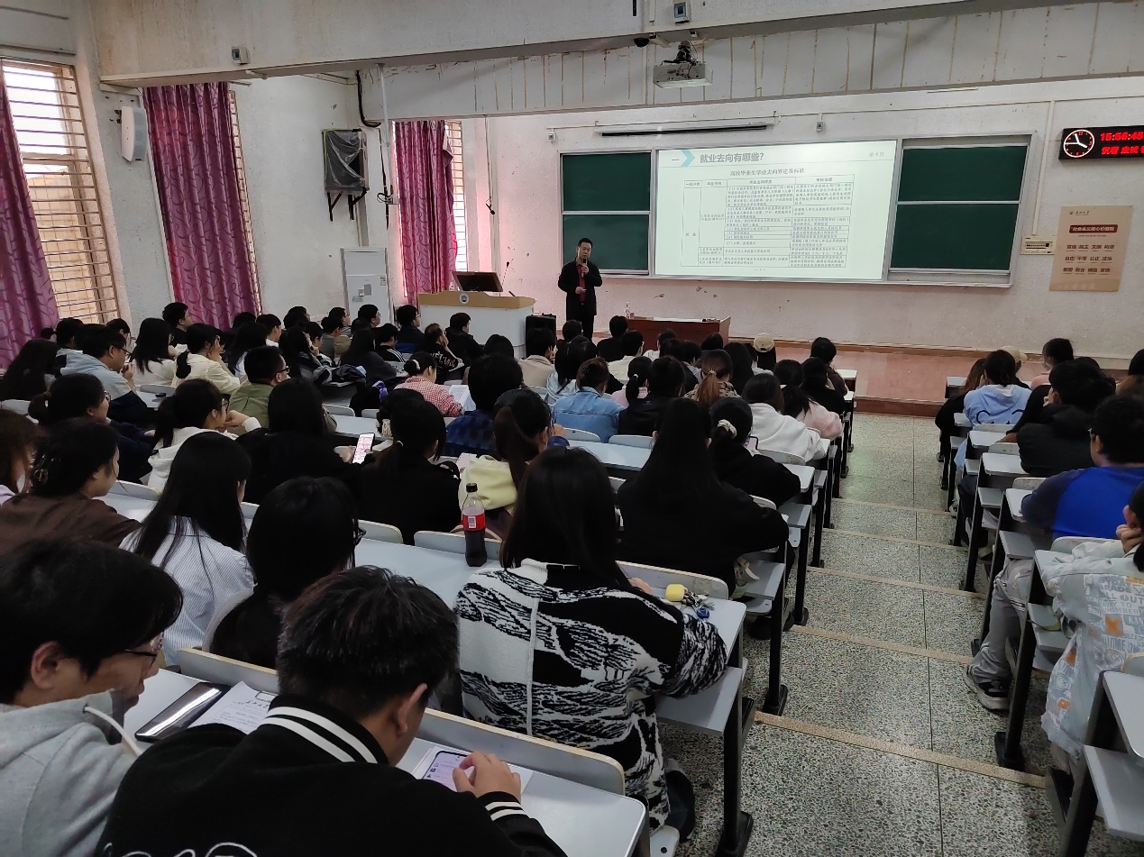 (通讯员 章崇烁)10 月 23 日下午 4 点,生命科学学院邀请党委书记谢作喜在 5 教 203 教室为2025届全体毕业生开展就业指导讲座。讲座内容丰富,包括毕业去向、就业形势、考研报考院校选择及就业准备等学生关注的问题。