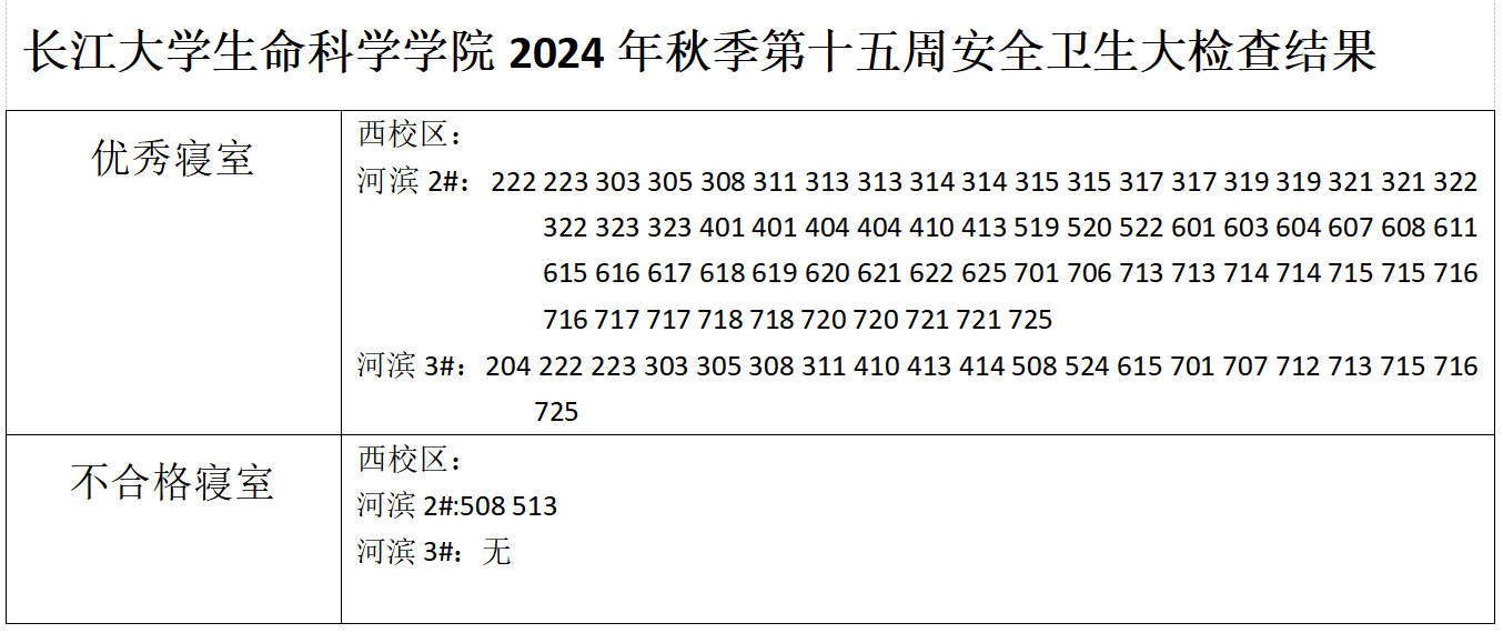 长江大学生命科学学院2024年秋季学期第十五周安全卫生大检查结果