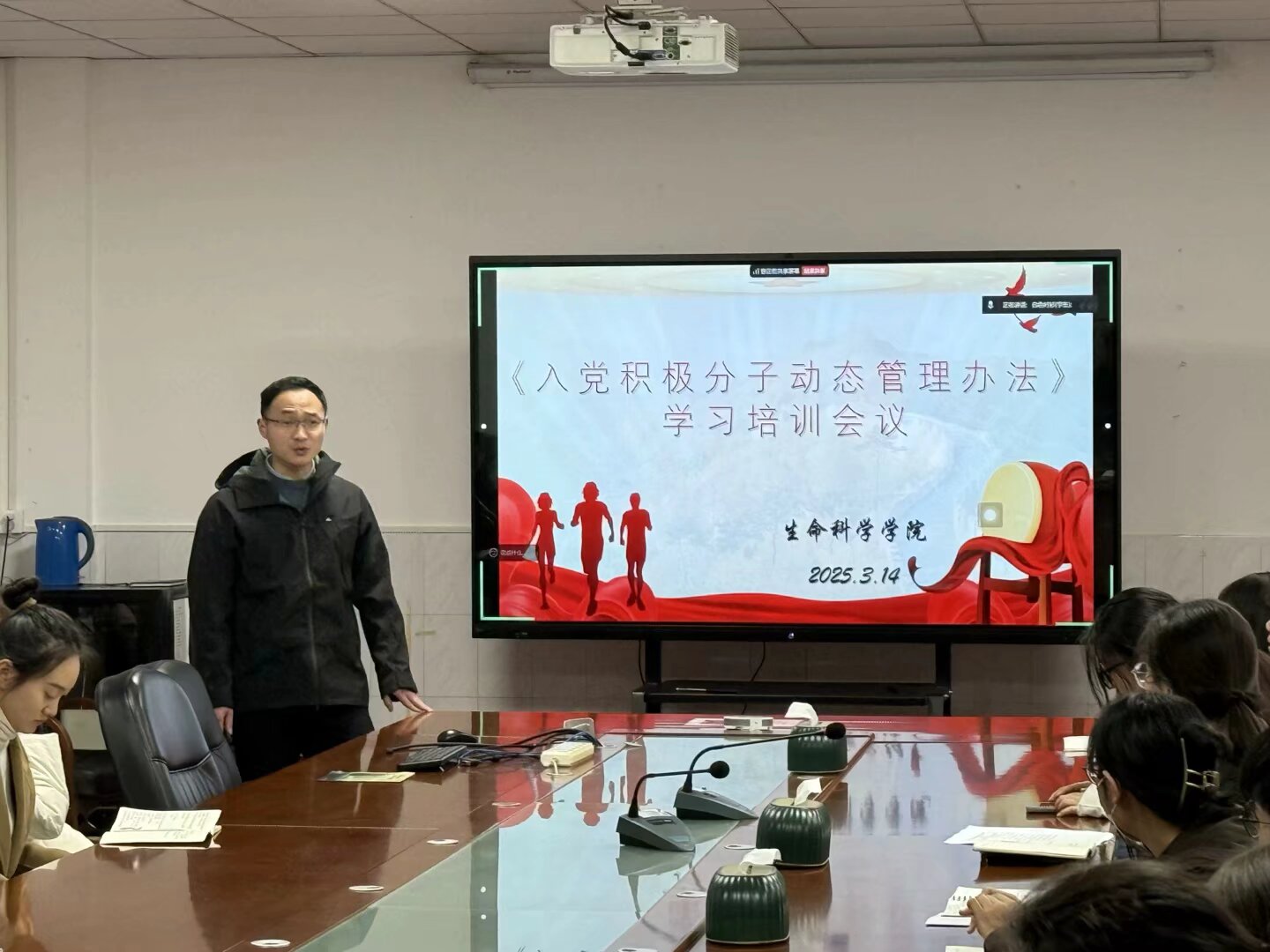 (通讯员 李敏)3月14日中午12:30,学院在1教217会议室开展了《生命科学学院入党积极分子动态管理办法》学习培训。此次培训由学院辅导员李敏主讲,旨在深入解读管理办法,规范入党积极分子的培养教育工作。学院各党支部支委、全体团支部书记参加培训会。