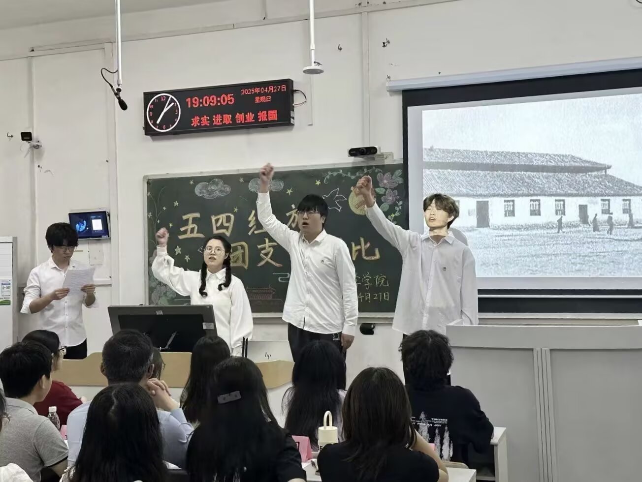 生科类32401团支部“团史励心铸魂,青春强校卫国”主题团会以抗议巴黎和会外交失败情景剧开场,将师生瞬间拉回百年前的五四运动。团会通过知识竞答、听歌识曲等形式学习团史。谭佳怡同学以演讲的形式讲述总体国家安全观,引导同学们保守国家秘密,争当国家安全守卫者。团会中,同学们还围绕助力学校“双一流”建设展开探讨,学习校史校情,增强爱校荣校使命感。