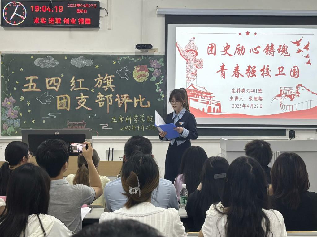 (通讯员 李敏 邵钰)为传承五四精神,强化基础团建,4月27日晚7时,生命科学学院在7教207教室举行示范主题团日活动。生科类32401团支部和食科类32403团支部参与展示。学院团委书记李敏、辅导员章崇烁和团支部书记代表参加活动。