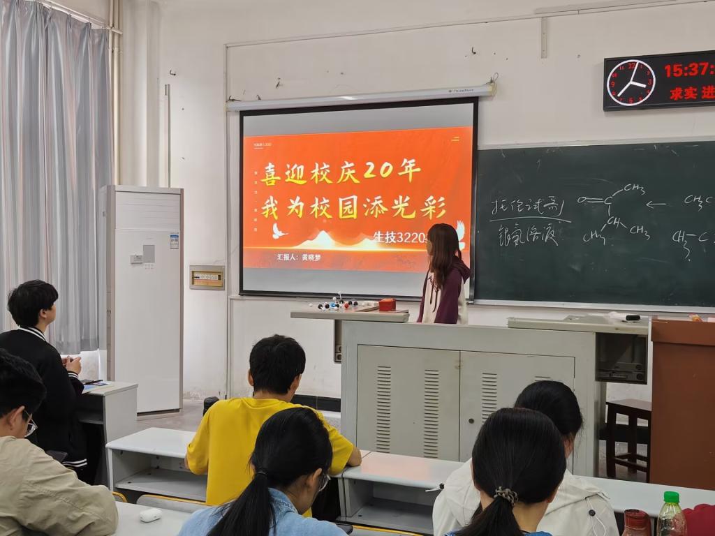 其中,生技32201班在2023年9月24日下午,于 7 教 106教室开展以“奋进写辉煌,奔跑向未来”为主题的九月团会。教唱学唱长江大学校歌;学习习近平总书记同团中央新一届领导班子集体谈话时的重要讲话精神;学习阿东在湖北调研并宣讲团十九大精神;学习团中央印发《关于新时代新征程加强和改进团员队伍建设工作的意见》;学习团中央对推进“青年大学习”工作高质量发展作出部署;进行主题教育学习学习贯彻习近平新时代中国特色社会主义思想主题教育工作会议内容;同时为做好迎接长江大学合并组建20周年工作,团支部副书记黄晓梦带领同学们展开“喜迎校庆20年,我为校园添光彩”主题班会。学习校情校史,营造校庆氛围;熟悉校庆安排,融入主题活动;提升文明素养,展现良好形象。