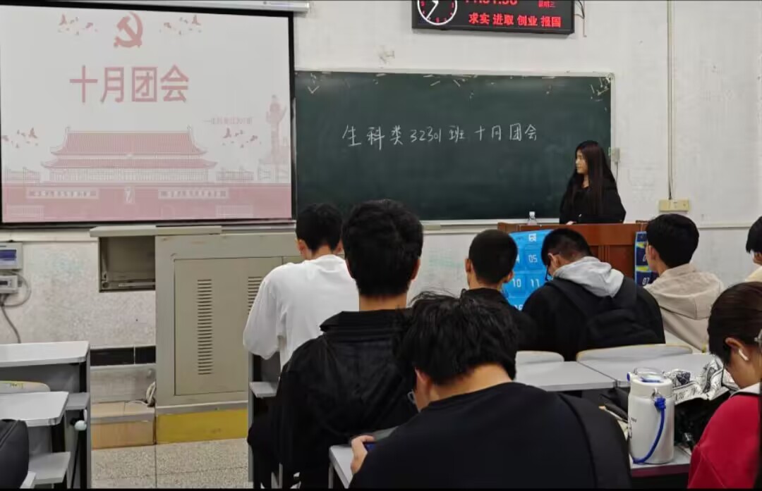 在本次活动期间,生科类32301班于10月24日在2教304教室,开展了“奋进写辉煌,奔跑向未来”十月主题团会。在本次会议中,同学们学习并感悟在以习近平同志为核心的党中央的坚强领导和习近平新时代中国特色社会主义思想科学引导下,新时代党和国家事业所取得的历史性成就;学习了习近平总书记给东北大学全体师生回信中所寄予的精神;学习了习近平总书记给中国人民公安大学在读英烈子女的回信中寄予的精神;还学习了长江大学校长刘勇胜在20周年暨高水平大学建设主题大会上的主题报告精神。