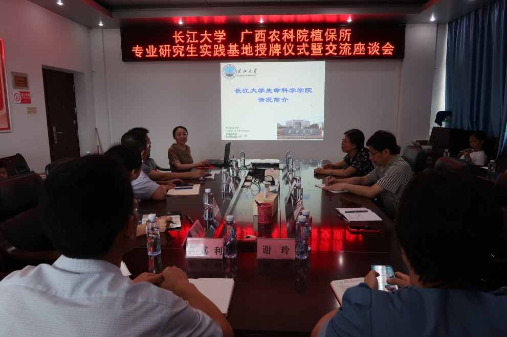 (通讯员 孙文秀)7月4日,我院“专业硕士研究生实践基地”授牌仪式在广西农科院植保所举行,学院党委书记蔡哲斌、副院长孙卫青、生物系党支部书记系副主任孙文秀,广西农科院植保所所长于永浩、党委书记韦善富、副所长杨朗、邓铁军及专家、博士代表参加授牌仪式。仪式后双方就人才培养、科学研究等方面的合作深化拓展进行了交流座谈。