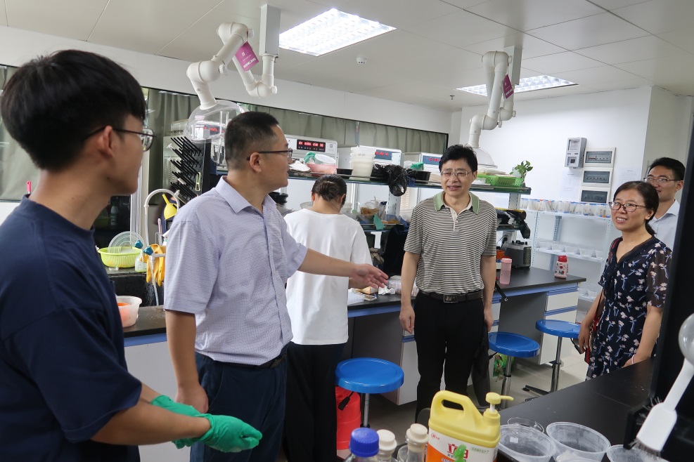 授牌仪式前,在于永浩所长陪同下,蔡哲斌书记一行参观了广西农科院科技成果展厅、昆虫馆、花卉基地以及科研实验室等平台,并看望了联合培养的硕士研究生。