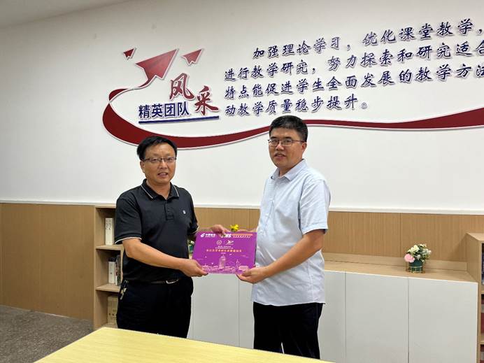杜何为院长将随州二中考取长江大学的学生录取通知书交给马校长