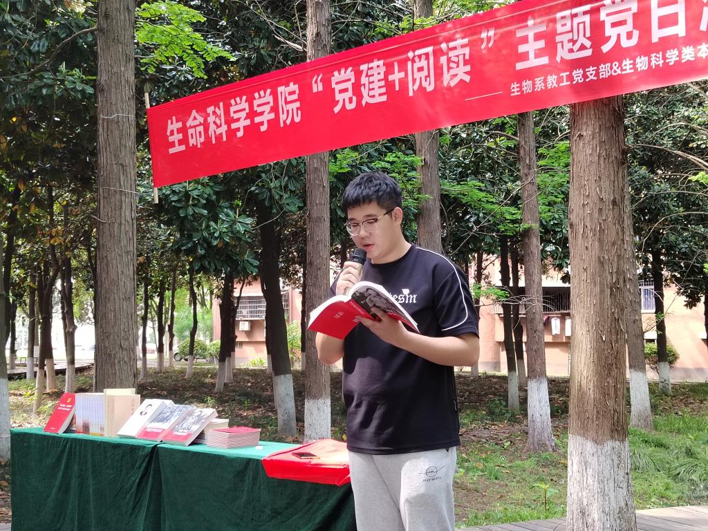 (通讯员 田博慧 李敏)读一本好书,树一面旗帜,建一座堡垒。为深入学习贯彻党的二十大精神,促进师生党建联建,深化学习型党组织建设,鼓励党员养成多读书、读好书的良好习惯,4月23日下午2:00,长江大学生命科学学院生物系教工党支部和生物科学类本科生党支部在室外联合开展了“党建+阅读”主题党日活动,在书香中传递奋进力量。
