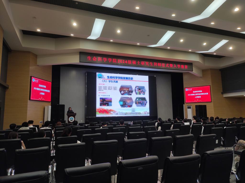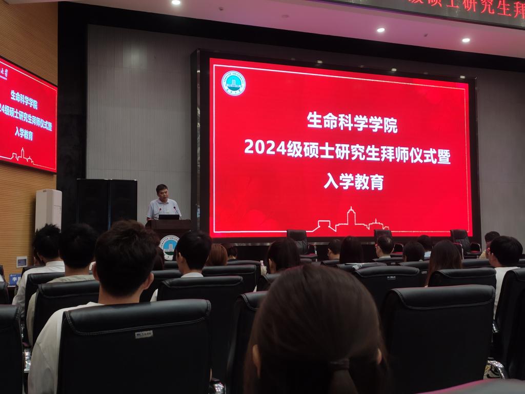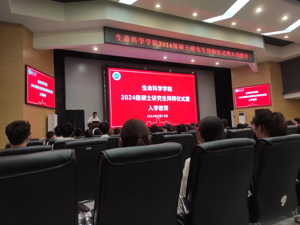 2024年9月13日下午2点30分,生命科学学院2024级硕士研究生拜师仪式暨入学教育在西校区农科大楼1058报告厅举行。学院全体领导、硕士研究生导师和2024级全体硕士研究生参加了本次活动。拜师仪式由学院党委书记谢作喜主持。