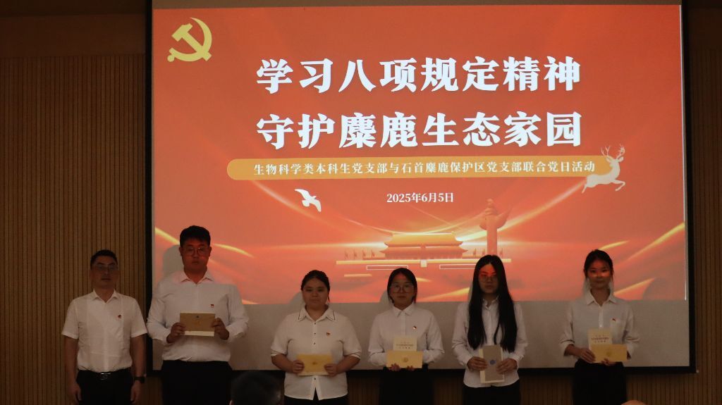 (通讯员 李敏 赵婉情)六月的江汉平原,晨雾氤氲着石首麋鹿保护区,32枚党徽在碧草蓝天间闪烁。6月5日上午,长江大学生命科学学院生物科学类本科生党支部与石首麋鹿保护区党支部以鹿为媒,开启了一场党建与生态保护深度交融的特殊党日活动。