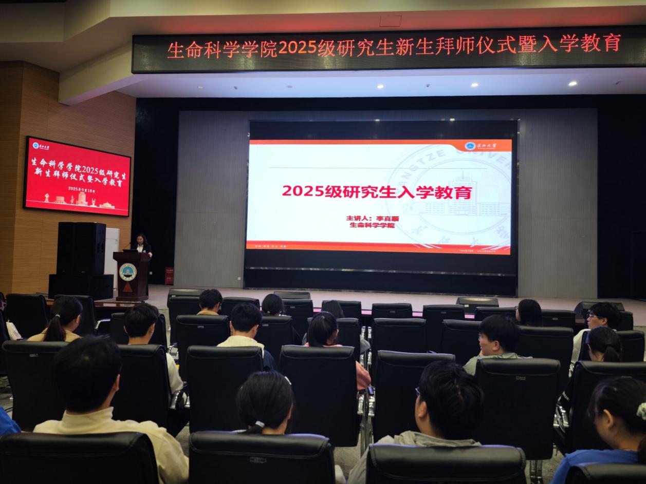 (通讯员:章崇烁)9月18日下午,长江大学生命科学学院在农科大楼1058学术报告厅举行2025级研究生新生拜师仪式暨入学教育。学院全体研究生导师、2025级新生参与,党委副书记万波主持活动。