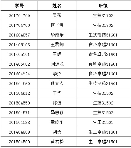 根据课堂考勤结果,累计旷课2学时的,26名同学;累计旷课4学时及以上的(旷课1次=2学时),14名同学;为严肃校风校纪,督促学生按时到课,及时教育违纪学生,根据《长江大学学生违纪处分办法》、《生命科学学院课堂考勤实施办法》,经学工办研究决定,对本月累计旷课4学时以上的同学予以通报批评: