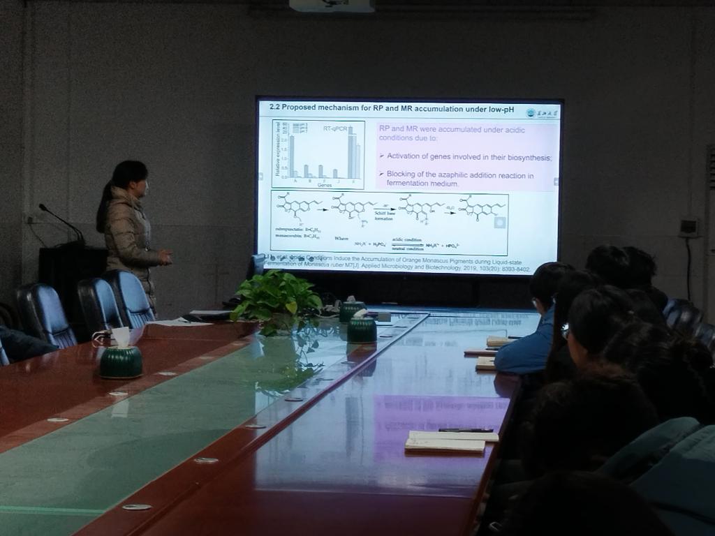 (通讯员杨笑彦)12月19日下午,生命科学学院在西校区1-217举办求实导师学术沙龙。此次活动由王珍博士主持。罗岸老师作题为烟草胚胎发生过程中胚柄细胞程序性死亡的分子机理研究的报告;硕士生导师李利做题为前体导向的半合成技术高效制备特定红曲色素组分研究的报告;共70余名师生参加。